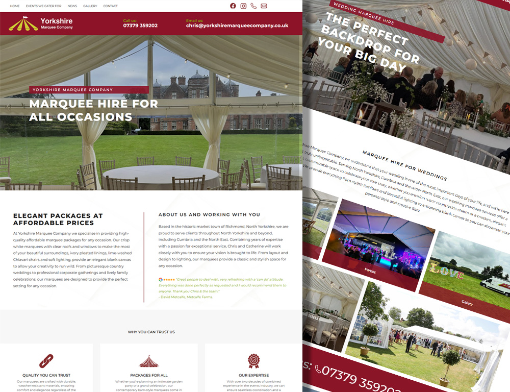 When the Yorkshire Marquee Company needed a professional website to showcase their marquees and attract new bookings, they turned to me to bring their vision online. Their previous website was dated, difficult to navigate, and failed to reflect the quality and elegance of the marquees they provide for weddings, parties and corporate events across Yorkshire and the North East.